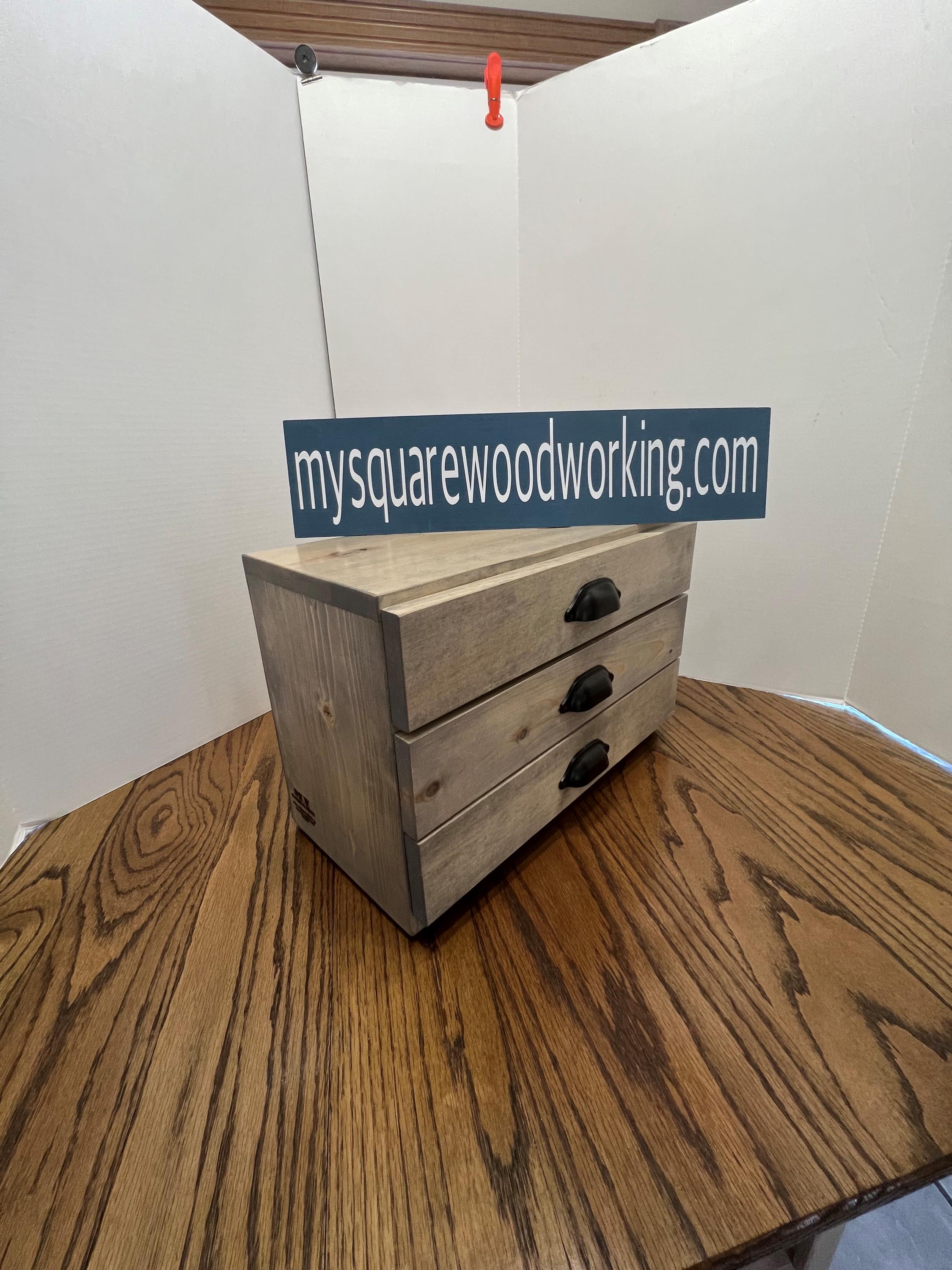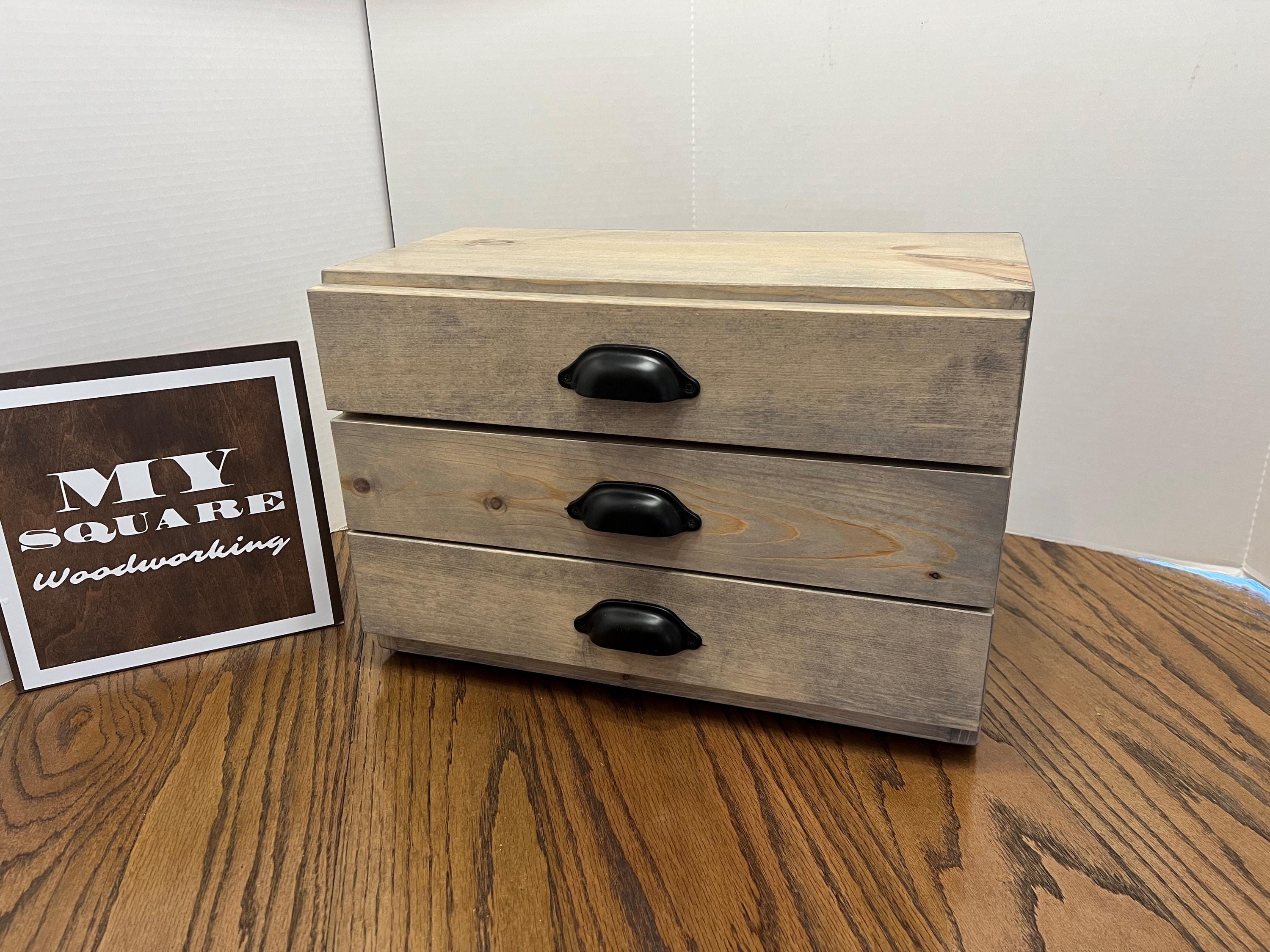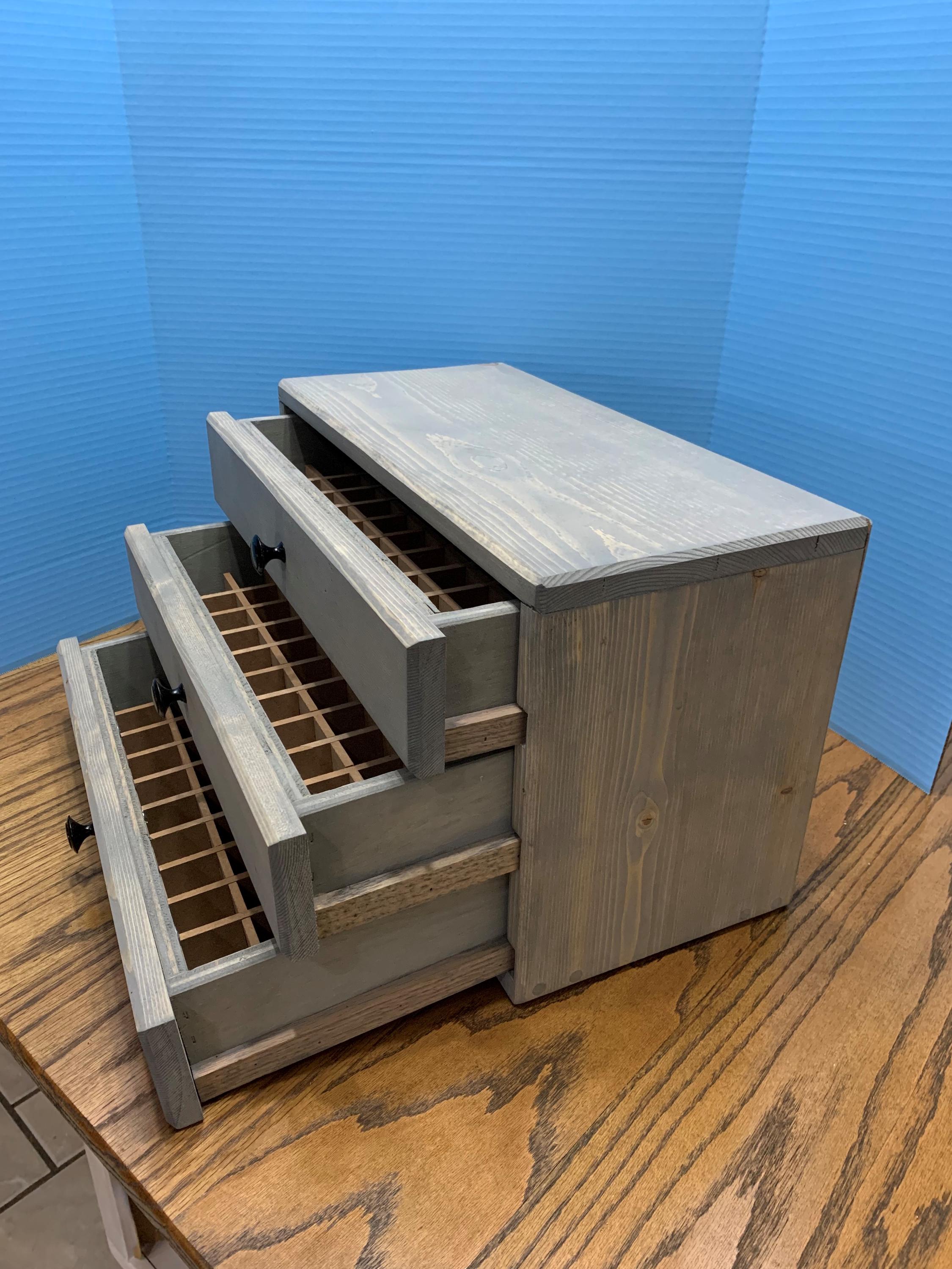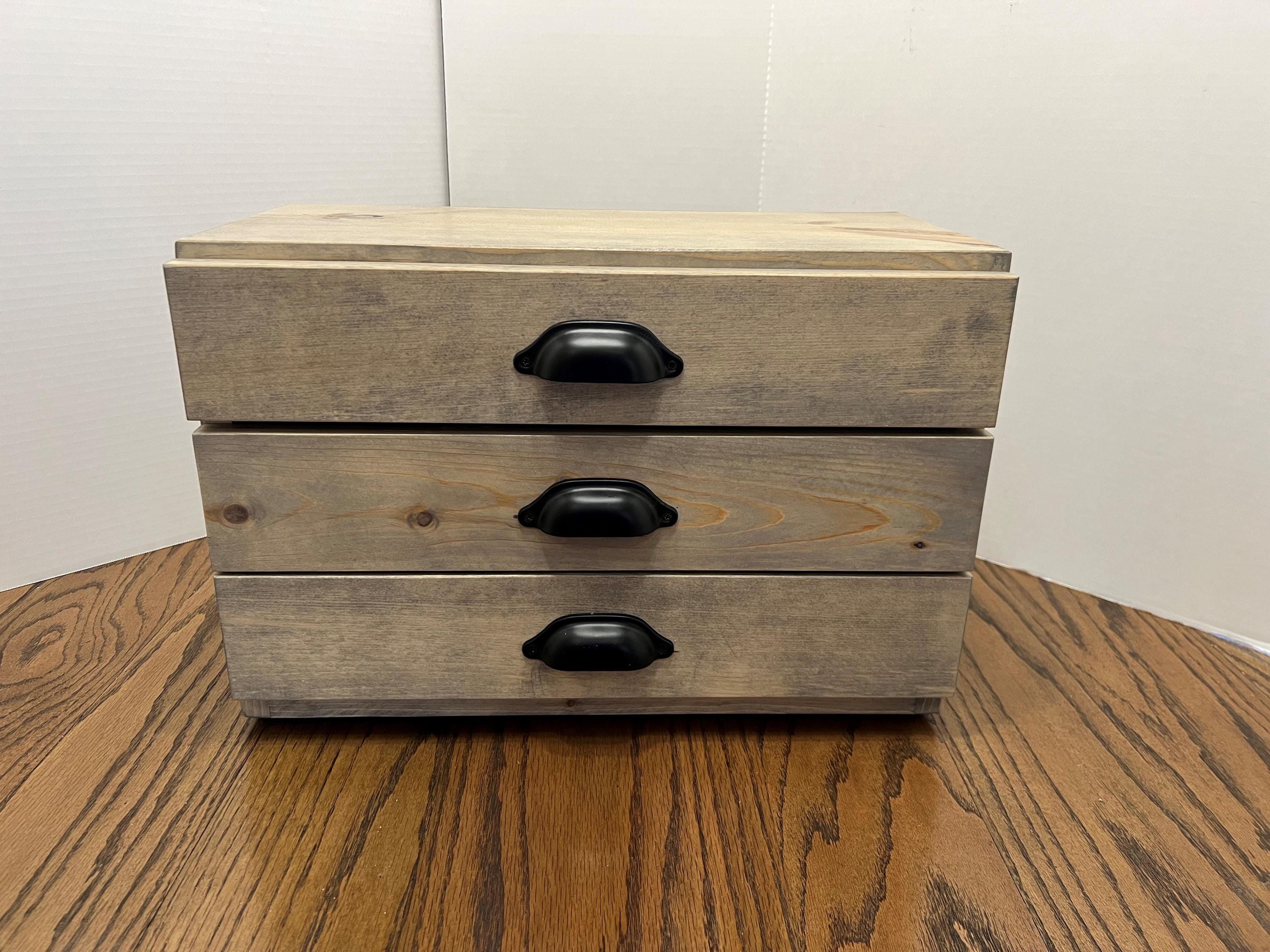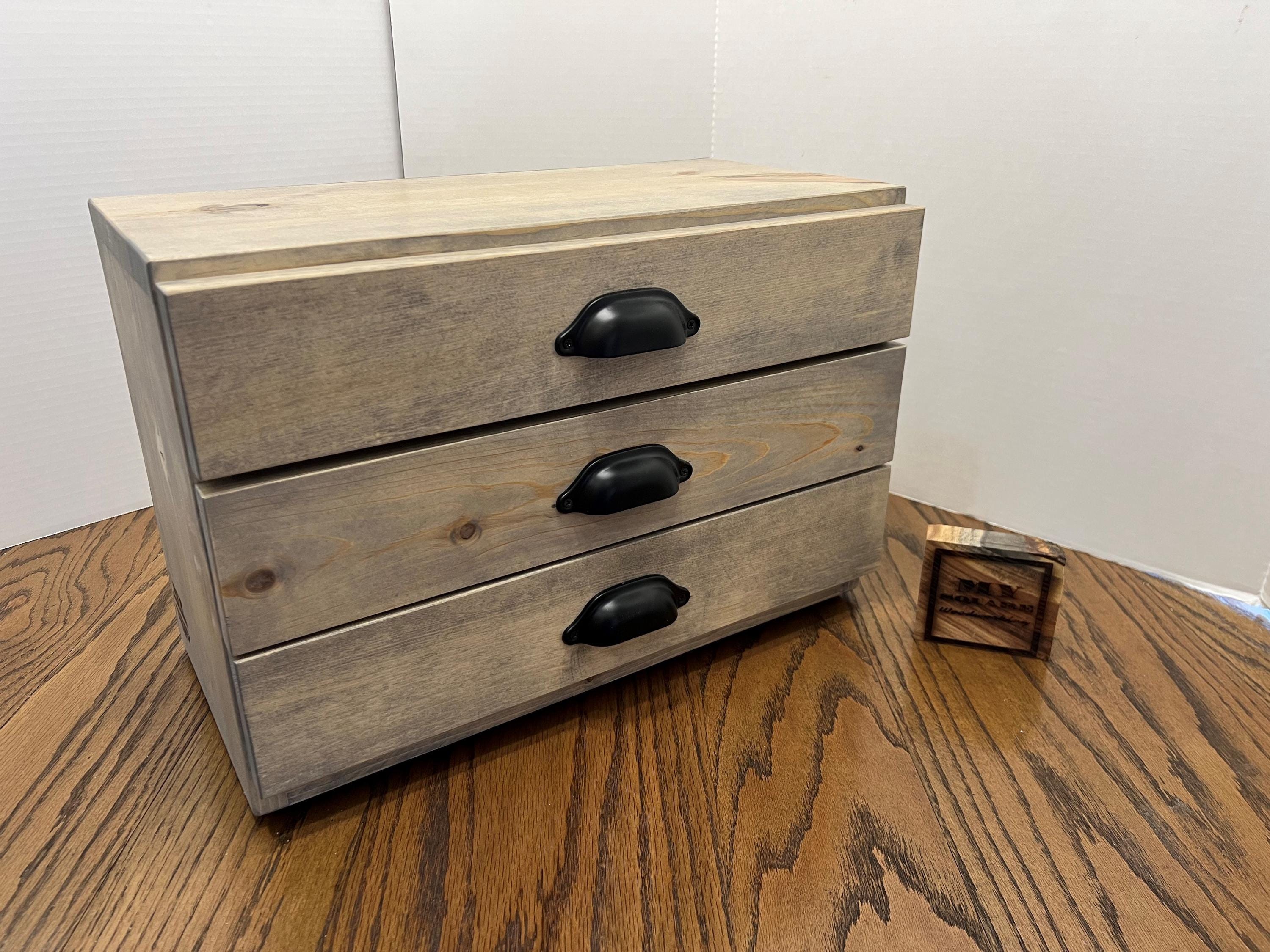 Handcrafted 3-Drawer Essential Oil Storage Chest Organize your essential oil collection in style with this beautifully crafted wooden chest. Designed to hold up to 150 bottles (5ml and 15ml sizes), it’s the perfect blend of function and rustic charm.